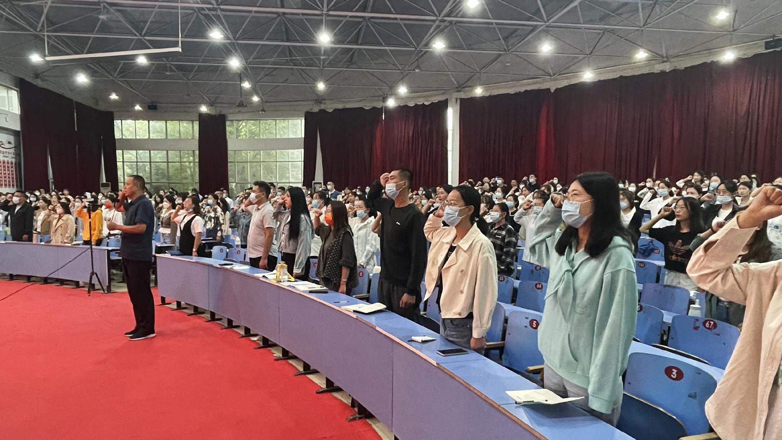 中寧縣新入職教師專題培訓(xùn)班上,新入職教師宣誓。