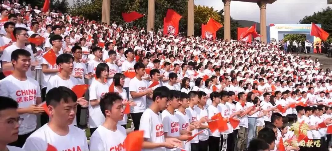“又是一年芳草綠,恰逢人間四月天?!苯眨憬瓗煼洞髮W(xué)千余名師生齊聚文化廣場(chǎng),用《校歌》、《國(guó)家》等歌曲串燒的方式,唱響對(duì)祖國(guó)的贊歌。
