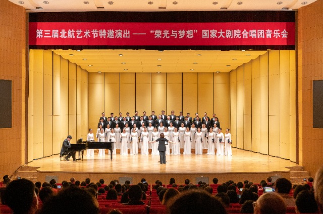 中國(guó)教育報(bào)-中國(guó)教育新聞網(wǎng)訊(記者 梁丹)為豐富學(xué)校文化供給,營(yíng)造濃厚文化氛圍,提升師生文化藝術(shù)素養(yǎng),3月30日晚,第三屆北京航空航天大學(xué)(以下簡(jiǎn)稱“北航”)藝術(shù)節(jié)特邀演出——“榮光與夢(mèng)想”國(guó)家大劇院合唱團(tuán)音樂(lè)會(huì)在北航晨興音樂(lè)廳上演。