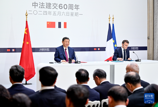 剛才,我同馬克龍總統(tǒng)舉行了富有成果的會談。我們一致認(rèn)為,中法關(guān)系具有珍貴歷史、獨特價值和重要使命,雙方要傳好歷史的接力棒,弘揚中法建交精神并為其賦予新的時代內(nèi)涵,開啟中法關(guān)系下一個60年的新征程。