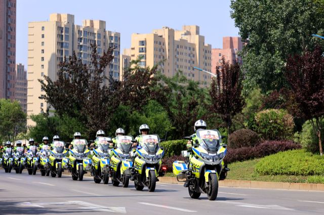6月6日,山東省棗莊市公安局市中分局交通警察大隊(duì)“護(hù)航高考”鐵騎隊(duì)員亮相城區(qū)街頭。通訊員 吉喆 孟見 攝