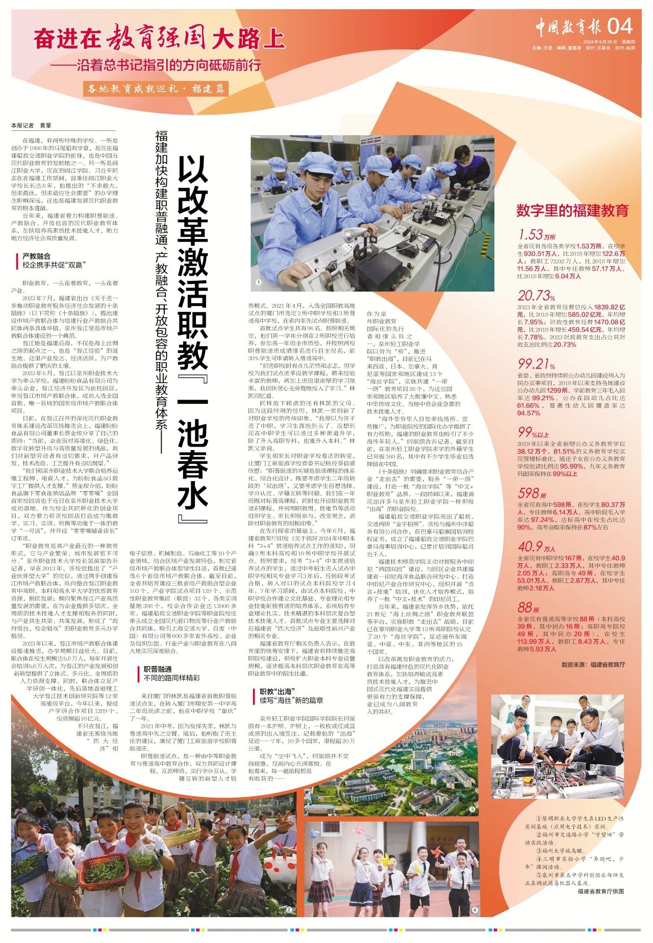 今天,“奮進(jìn)在教育強(qiáng)國(guó)大路上——沿著總書記指引的方向砥礪前行”專欄之“各地教育成就巡禮”系列,通過一個(gè)視頻、一組大圖、一篇報(bào)道介紹福建如何加快構(gòu)建職普融通、產(chǎn)教融合、開放包容的職業(yè)教育體系——