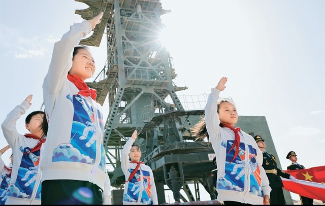 少先隊是建設社會主義和共產主義的預備隊。廣大少先隊員在少先隊這所大學校里立志向、修品行、練本領,從小培養(yǎng)熱愛黨、熱愛祖國、熱愛人民的情懷,展現(xiàn)出朝氣蓬勃的精神風貌。2024年4月24日是第九個“中國航天日”,“紅領巾愛祖國——我心中的五星紅旗”主題活動在中國酒泉衛(wèi)星發(fā)射中心東方紅衛(wèi)星發(fā)射場舉行。圖為當日,來自內蒙古、甘肅、四川等地的少先隊員在中國酒泉衛(wèi)星發(fā)射中心東方紅衛(wèi)星發(fā)射塔架下敬隊禮。 新華社記者 金立旺/攝