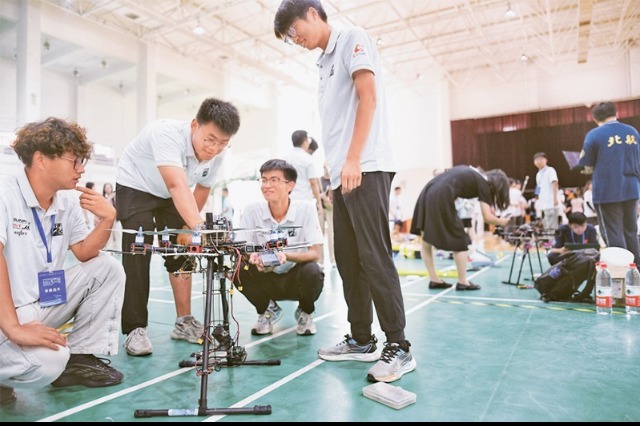 社會主義建設者和接班人必須全面發(fā)展。形式多樣的學術實踐競賽,對培養(yǎng)大學生科學精神、全面發(fā)展發(fā)揮了積極作用。8月17日至18日,2024中國大學生飛行器設計創(chuàng)新大賽中部賽區(qū)選拔賽在天津舉行。圖為參賽選手調試飛行器。 中新社記者 佟郁/攝