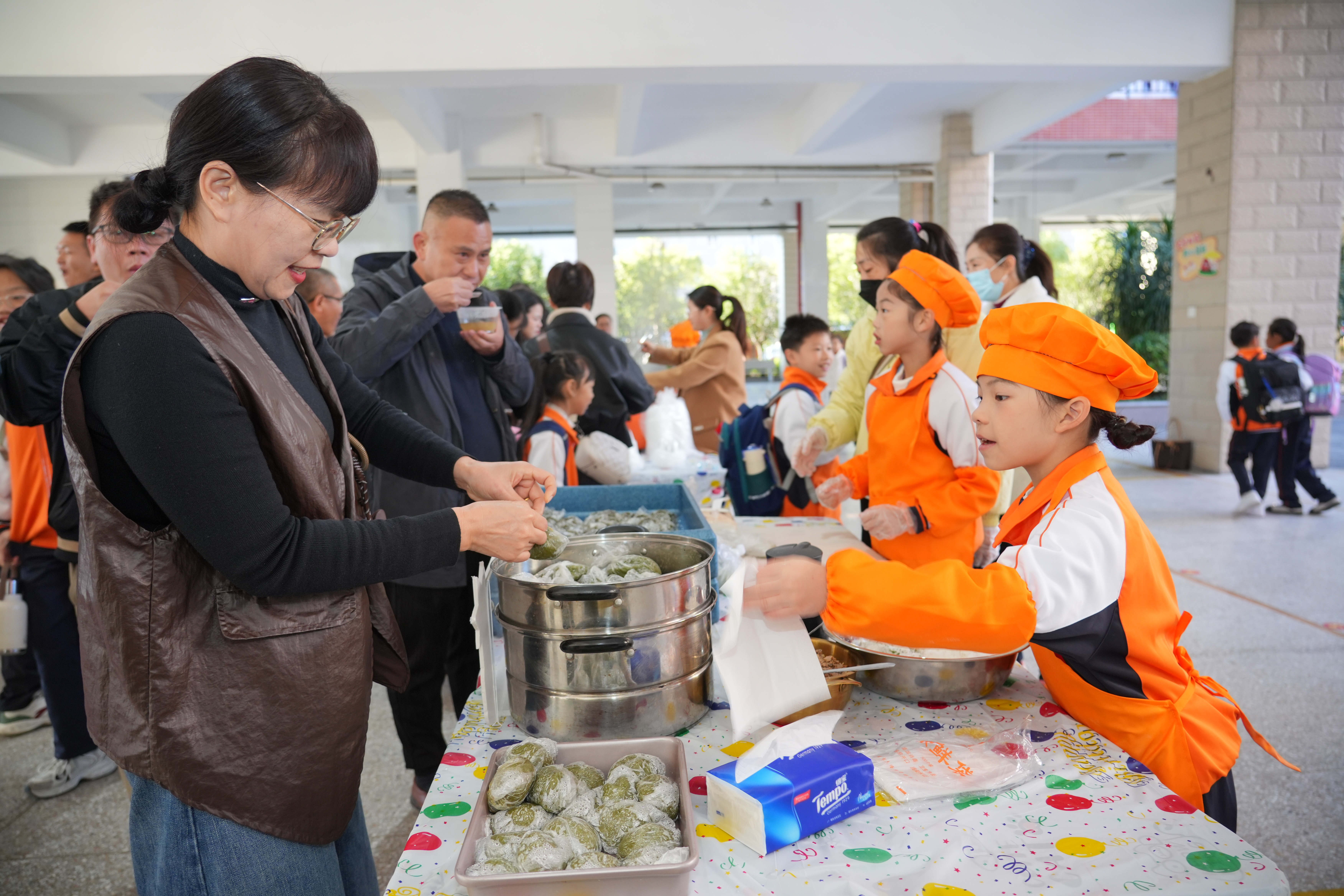 參與活動(dòng)的教師在校園內(nèi)品嘗學(xué)生制作的地方美食 學(xué)校供圖