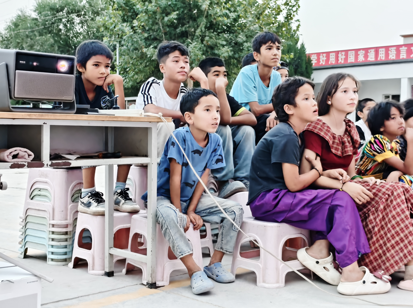 阿瓦提艾日克村,是“天山同語?民族同心”團隊的實踐基地之一。在多年開展“推普助力鄉(xiāng)村振興”活動過程中,團隊發(fā)現當地優(yōu)質圖書資源相對匱乏,相關科技產品普及程度有限。2024年活動期間,該團隊與阿瓦提艾日克村村委會、英吾斯坦鄉(xiāng)七村小學深入溝通,共同梳理緊缺物資清單。2025年3月至5月,團隊先后為英吾斯坦鄉(xiāng)阿瓦提艾日克村及七村小學募集價值8萬余元的優(yōu)質圖書、教學文具及電子投影設備等教育物資。