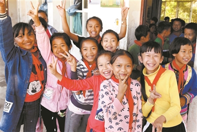 近日,云南西雙版納基諾山基諾族鄉(xiāng)民族小學(xué)學(xué)生面對鏡頭露出笑容。該校共有712名學(xué)生,大多是基諾族?;Z族僅有兩萬多人,主要居住在基諾山基諾族鄉(xiāng)。近年來,在各級黨委、政府的關(guān)心下,當?shù)氐拿褡褰逃聵I(yè)蓬勃發(fā)展。當?shù)剡€實施了“兩免一補”“營養(yǎng)改善計劃”及“人口較少民族學(xué)生生活補助”等措施,并確保適齡兒童全部入學(xué)。如今,基諾族學(xué)生在寬敞明亮的教室里接受教育,快樂學(xué)習(xí),健康成長。新華社記者 藺以光 攝