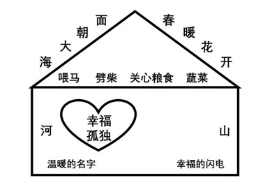 “析讀”是朗讀過程中對文本進(jìn)行的分析。詩歌通常是意象的組合,了解詩歌意象是把握詩歌情感的關(guān)鍵。同時詩歌意象是通過富有韻律的語言呈現(xiàn)出來的。通過有節(jié)奏、有感情的朗讀有助于學(xué)生體會詩歌的語言之美和意境之美。在此課中,我要求學(xué)生通過尋找、分析意象進(jìn)而“美讀”。采用的方式主要是以四人為單位,進(jìn)行小組討論進(jìn)而交流成果。以第一節(jié)為例,學(xué)生找到了“面朝大海、春暖花開、喂馬劈柴、關(guān)心糧食和蔬菜”等意象后,指出詩人向往的是一種平凡、簡單、自由、遠(yuǎn)離喧囂的田園式生活,并體驗(yàn)到詩人此時內(nèi)心是充滿幸福的。為更準(zhǔn)確地體驗(yàn)這種情感,我建議學(xué)生展開聯(lián)想,想象一下自己生活中的幸福,并用詩化的語言表達(dá)出來,讓大家共同分享。