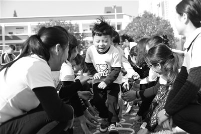 為增強(qiáng)幼兒體質(zhì),提高幼兒適應(yīng)季節(jié)的能力,讓幼兒與父母共享快樂的親子運(yùn)動(dòng)時(shí)光。近日,江西省上高縣幼兒園舉行了別開生面的冬季親子運(yùn)動(dòng)會(huì)。運(yùn)動(dòng)項(xiàng)目有親子操、親子游戲和趣味比賽,形式多樣,妙趣橫生。雖然天氣微寒,但運(yùn)動(dòng)場上熱火朝天,幼兒在陽光下歡呼雀躍,盡展運(yùn)動(dòng)小達(dá)人風(fēng)采。圖為中班親子運(yùn)動(dòng)“圈圈樂”活動(dòng)場景。