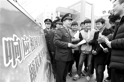 近日,河南省禹州市人武部在該市第一高級中學(xué)開展征兵宣傳進(jìn)校園活動。征兵宣傳人員通過設(shè)置宣傳展板、發(fā)放宣傳冊、口頭講解等方式,向該校高中生宣講最新的征兵政策,號召有志青年積極參軍入伍、報效祖國。牛書培 攝