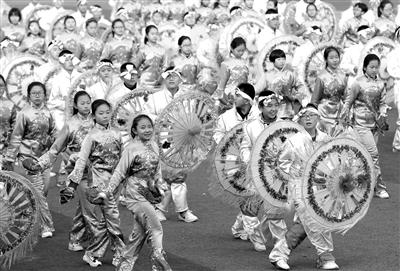 日前,學(xué)生們?cè)诒硌菅砀琛秱慊ㄅご骸?。近日,山西省臨汾市同盛實(shí)驗(yàn)中學(xué)舉辦“社火鬧春”民俗表演,全校3000余名學(xué)生參與表演了威風(fēng)鑼鼓、龍獅、秧歌、高蹺及旱船等12項(xiàng)民間傳統(tǒng)社火活動(dòng),開(kāi)創(chuàng)傳統(tǒng)文化進(jìn)校園的新模式。
