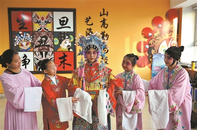 10月21日,山西省太原市大南關(guān)小學(xué)學(xué)生在練習(xí)戲曲動(dòng)作。近年來,該校將戲曲文化引進(jìn)校園,邀請(qǐng)專業(yè)老師為學(xué)生講解戲曲知識(shí),讓學(xué)生感受傳統(tǒng)文化魅力。