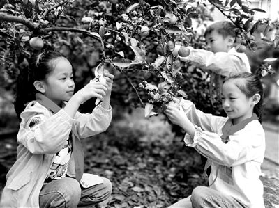 10月22日,在江蘇省張家港市港區(qū)小學的果園里,學生們正在采摘橘子,享受金秋豐收的喜悅。該校在校園一角開辟出一片果園,種植了蘋果、桃子、葡萄等水果,讓孩子們了解自然、親近自然、熱愛自然。