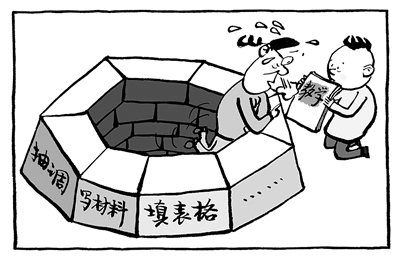 寫材料、填表格,圖片視頻上傳APP……新華社記者近日走訪發(fā)現(xiàn),評(píng)比考核過多、無關(guān)社會(huì)事務(wù)進(jìn)校園等仍在多地存在。三十歲不到的彭老師告訴記者,學(xué)校但凡有活動(dòng)他就要加班整理臺(tái)賬,“方案、成績、總結(jié)、配套的留痕圖片、視頻,一個(gè)都不能少”。還有一線教師透露,因?yàn)榻逃到y(tǒng)人數(shù)眾多,各種APP下載、公眾號(hào)關(guān)注、朋友圈點(diǎn)贊、網(wǎng)絡(luò)問卷答題等“在線負(fù)擔(dān)”往往被硬塞給老師們。