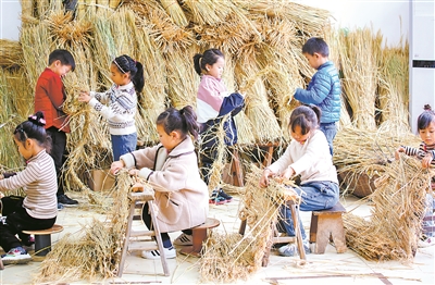 近日,江蘇如皋經(jīng)濟(jì)技術(shù)開發(fā)區(qū)實(shí)驗(yàn)幼兒園的小朋友在學(xué)習(xí)編草簾。大雪節(jié)氣剛過,該園開展知民俗,弘揚(yáng)傳統(tǒng)文化活動,教師帶領(lǐng)小朋友走進(jìn)田野,學(xué)習(xí)用秸稈編織草繩、草簾,用于包裹過冬果樹。徐慧 攝