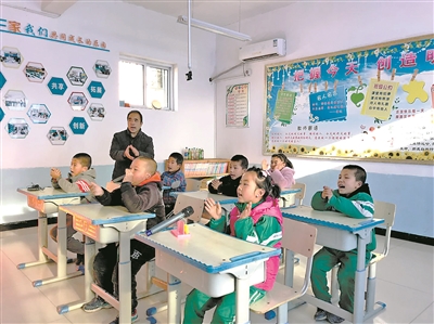 馬浩楠拿起話筒,跟著老師的節(jié)拍響亮地唱起了兒歌《動物說話》,3個教室同時響起掌聲。