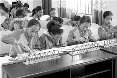 長(zhǎng)途跋涉2300多公里,教育部名校長(zhǎng)領(lǐng)航工程學(xué)員、浙江上虞城東小學(xué)校長(zhǎng)林建鋒日前帶領(lǐng)工作室5位成員來(lái)到四川涼山彝族自治州寧南縣開(kāi)展教育幫扶,并在4所學(xué)校建立了體現(xiàn)林建鋒校長(zhǎng)教育理念的“三有”學(xué)生閱覽室和“愛(ài)?!睂?shí)驗(yàn)室。圖為涼山的孩子們?cè)诳茖W(xué)課堂上動(dòng)手動(dòng)腦學(xué)科學(xué)。 夏伍華 攝