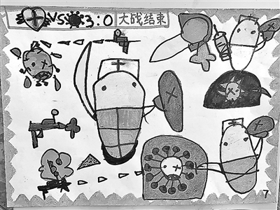 所有醫(yī)生團(tuán)結(jié)一致、精心實(shí)驗(yàn),終于找到了戰(zhàn)勝病毒的方法,病毒被打敗了。