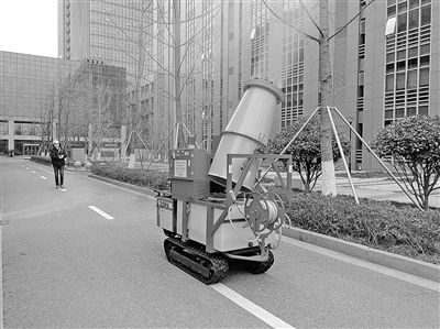 據悉,消毒機器人每小時行走7公里,一次能開30公里,1小時可以消殺4萬平方米以上,可以廣泛應用于城市街道、社區(qū)、集中防疫點、道路卡口、車站、工地、學校、地下車庫等場所。 丁姍 文 牛明強 攝