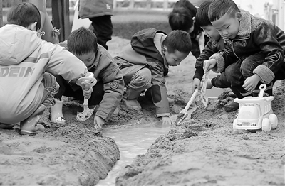 課程從幼兒的游戲中融入。沙池尋寶、快樂騎車、創(chuàng)意小畫家、勤勞小木工……教師洞察幼兒的需要,提供適宜的支持,讓幼兒在與環(huán)境、材料充分的互動中,用自己的方式進行創(chuàng)造,表達自我感受,逐步建立自己的經(jīng)驗體系。