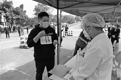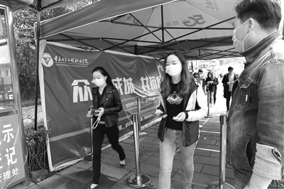 應(yīng)急演練主要模擬學(xué)生在入校報(bào)到和在學(xué)生宿舍出現(xiàn)發(fā)熱等癥狀時(shí),學(xué)校的防控應(yīng)急處理流程,主要涉及學(xué)生異常狀況發(fā)現(xiàn)、轉(zhuǎn)運(yùn)、隔離、報(bào)告、消殺和師生錯(cuò)時(shí)就餐6個(gè)場(chǎng)景。在入校演練環(huán)節(jié),由帶班領(lǐng)導(dǎo)、學(xué)管部門(mén)人員、醫(yī)護(hù)人員、安保人員組成的入校檢測(cè)隊(duì)伍提前上崗,組織“學(xué)生”在校門(mén)口分成四隊(duì)前后保持1.5米以上距離(佩戴口罩)有序排隊(duì),進(jìn)入體溫檢測(cè)通道,接受檢測(cè)組的體溫檢測(cè),在出示校園卡及“渝康碼”后有序入校。體溫異常者,在校門(mén)外“臨時(shí)觀(guān)察區(qū)”等候醫(yī)護(hù)人員復(fù)測(cè),體溫仍然高于37.3℃的,詢(xún)問(wèn)現(xiàn)病史及流行病學(xué)史,上報(bào)校防控辦,由值班輔導(dǎo)員陪同,乘坐學(xué)校指定車(chē)輛至陳家橋醫(yī)院發(fā)熱門(mén)診就診。