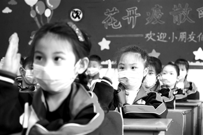 4月26日,浙江省湖州市長(zhǎng)興縣第四小學(xué)一年級(jí)學(xué)生在教室上開(kāi)學(xué)第一課。當(dāng)日,湖州市各小學(xué)一、二、三年級(jí)學(xué)生復(fù)課。至此,該市中小學(xué)校分期分批、錯(cuò)時(shí)錯(cuò)峰,完成全面開(kāi)學(xué)復(fù)課工作。