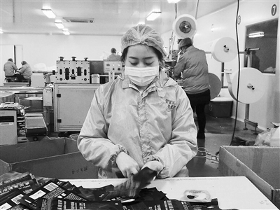 大年二十八,是殷悅到工廠上班的第一天。醫(yī)用口罩生產(chǎn)車間的衛(wèi)生標(biāo)準(zhǔn)很高,進(jìn)入時不僅要穿專門的工作服,還必須進(jìn)行全身消毒?!皬纳a(chǎn)到包裝,每個步驟都有著嚴(yán)格的規(guī)范,看似簡單的工作也有很多小技巧?!币髳傉f,“工作人員需要時刻提起精神,對口罩的衛(wèi)生質(zhì)量進(jìn)行嚴(yán)格把關(guān),才能放心地將它們交到防疫一線。”