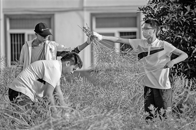 近日,浙江省衢州高級中學近百名學生參加了勞動實踐活動——收割油菜。據(jù)悉,該校油菜地在校園內(nèi)的花田里,這片花田近20畝,是2013年四幢校舍危房拆除后,經(jīng)全體師生討論決定改造而成的。每年師生都會一起種植油菜、向日葵、蕎麥、格?;?、馬鞭草等,共同體驗勞動的付出和豐收的喜悅。