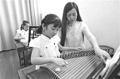進入暑假以來,江蘇省連云港市東??h黃川鎮(zhèn)積極安排師資與場地,為留守兒童參加傳統(tǒng)文化及藝術(shù)學(xué)習(xí)提供了很多便利條件。相關(guān)培訓(xùn)豐富了留守兒童的生活,也提升了他們的文化素養(yǎng)。圖為東海縣周瑩古箏坊的教師正在輔導(dǎo)一名留守女孩彈奏古箏。