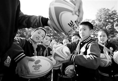 近日,沈陽農(nóng)業(yè)大學(xué)附屬小學(xué)學(xué)生在沈農(nóng)橄欖球隊(duì)隊(duì)員的輔導(dǎo)下進(jìn)行橄欖球基礎(chǔ)訓(xùn)練。近年來,沈陽農(nóng)大附小依托大學(xué)資源,開設(shè)橄欖球特色體育課程,讓學(xué)生享受運(yùn)動(dòng)樂趣,增強(qiáng)身體素質(zhì),錘煉意志品質(zhì)。張宜軍 本報(bào)記者 張學(xué)軍 攝