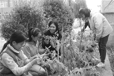 日前,山東省安丘市柘山鎮(zhèn)車莊小學(xué)六(三)班第三小組的學(xué)生和勞技教師一起在種植角觀察辣椒的生長(zhǎng)情況。近年來(lái),該校將校園內(nèi)的空地規(guī)劃成大小不一的種植角,分配到各個(gè)班級(jí),平日里學(xué)生自己翻土、選種、播種、澆水、施肥、采摘。在種植角,孩子們不僅掌握了有關(guān)種植的知識(shí),而且提高了勞動(dòng)意識(shí)和勞動(dòng)技能。