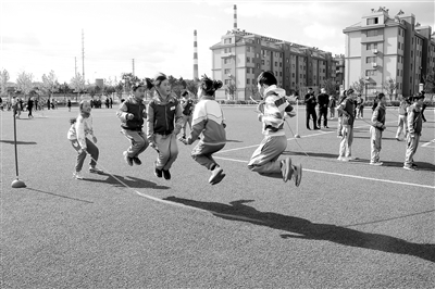 近日,山東省威海市文登區(qū)天福小學(xué)學(xué)生在課間花樣跳繩。該校扎實開展體育鍛煉活動,在增強學(xué)生身體素質(zhì)的同時培養(yǎng)學(xué)生合作意識,增強學(xué)生團隊協(xié)作能力。于文麗 攝