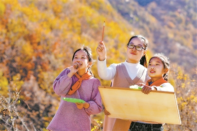 近日,河北省邢臺(tái)市內(nèi)丘縣獐么中心小學(xué)教師在黃岔村指導(dǎo)學(xué)生繪畫。深秋時(shí)節(jié),該校美術(shù)社團(tuán)的學(xué)生走出教室來(lái)到戶外,以“山村秋日”為主題,用畫筆描繪家鄉(xiāng)斑斕秋色,感受秋天的氣息。