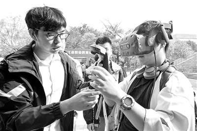 近日,寧波城市職業(yè)技術(shù)學院信息與智能工程學院學生徐高翔(左一),在指導同學體驗利用虛擬現(xiàn)實技術(shù)開發(fā)的計算機組裝教學流程。11月8日,該校舉行以“人人出彩,技能強國,打造職教‘重要窗口’”為主題的浙江省暨寧波市職業(yè)教育活動周啟動儀式。