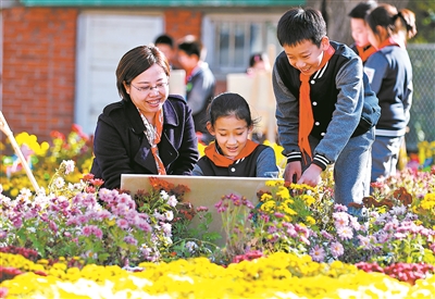 日前,沈陽農(nóng)業(yè)大學(xué)附屬小學(xué)學(xué)生來到沈農(nóng)菊園賞菊畫菊,領(lǐng)略秋天的美景。主題為“初心永恒”的沈農(nóng)菊園,由沈陽農(nóng)業(yè)大學(xué)林學(xué)院教授祝朋芳團隊提供的包括沈農(nóng)優(yōu)青、沈農(nóng)淡妝、黃磐石、黃鶯、夕陽紅、中國紅在內(nèi)的14個科研品種的沈農(nóng)菊精心布置而成。