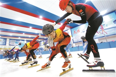 11月17日,愛好速滑運動的學(xué)生在河北省邯鄲市永年區(qū)一家滑冰館進行訓(xùn)練。近年來,永年區(qū)深入推進冰雪運動進校園活動,讓學(xué)生們廣泛參與到冰雪運動中,盡情體驗冰上運動的速度與激情。胡高雷 攝