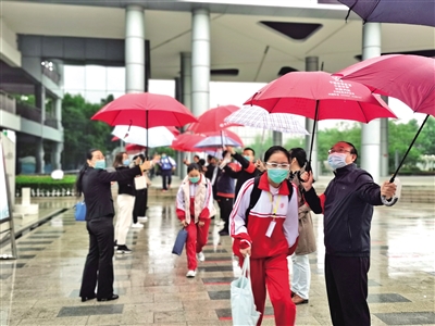 《中庸》有言:“唯天下至誠(chéng)為能化?!?020年5月7日,臨近放學(xué),氣溫驟降,下起了雨。此時(shí)正值居家隔離剛剛解封,學(xué)生們體質(zhì)普遍較差。當(dāng)時(shí),正在校門口值班的安波,迅速帶領(lǐng)值班教師在雨中排成兩排,撐起傘,將學(xué)校大廳和校門口的道路連接起來。許多路過的教師、家長(zhǎng)也紛紛加入到隊(duì)伍中來,傘挨傘,心連心,架起了一座“彩虹橋”。學(xué)生們?cè)趥阆掠行虺鲂#瑴嘏氐郎弦宦暵暋袄蠋?,辛苦了!?/P>