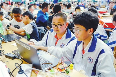 ④長(zhǎng)春汽車經(jīng)濟(jì)技術(shù)開(kāi)發(fā)區(qū)第二實(shí)驗(yàn)學(xué)校學(xué)生在參加中小學(xué)人工智能綜合實(shí)踐活動(dòng)。