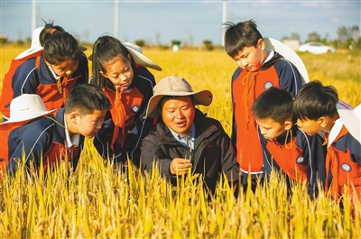 近日,江蘇省南通市通州區(qū)金沙小學(xué)組織學(xué)生來(lái)到校外田間,聽(tīng)農(nóng)業(yè)技術(shù)人員講解水稻種植知識(shí),讓學(xué)生了解種糧的艱辛,培養(yǎng)學(xué)生熱愛(ài)勞動(dòng)、愛(ài)惜糧食的美德。 翟慧勇 攝
