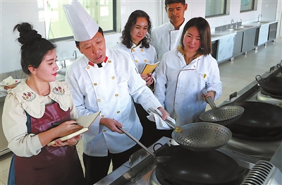 “張家口的老師來了,讓我們學(xué)到了真本事。”“我哥哥就是在這里學(xué)了烹飪,現(xiàn)在到大酒店當(dāng)了廚師?!薄?dāng)張家口市職業(yè)教育調(diào)研團(tuán)團(tuán)長、張家口市教育局副局長戴文忠與和碩縣高級中學(xué)職高班學(xué)生交流時(shí),孩子們一個(gè)個(gè)爭搶著說。