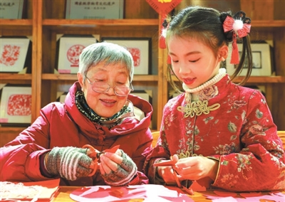 近日,在江西省瑞昌市非遺傳承基地,瑞昌剪紙非遺傳承人在教小朋友創(chuàng)作春節(jié)相關(guān)的剪紙作品,讓孩子體驗(yàn)春節(jié)民俗文化。 魏東升 攝