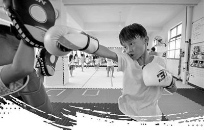 云南省曲靖市陸良縣一家青少年武術(shù)搏擊俱樂部內(nèi),小學(xué)員們專注練習(xí)泰拳搏擊。 王勇 攝