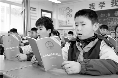 在安徽省合肥市廬陽區(qū)五一小學,學生在學習憲法知識。趙明 攝