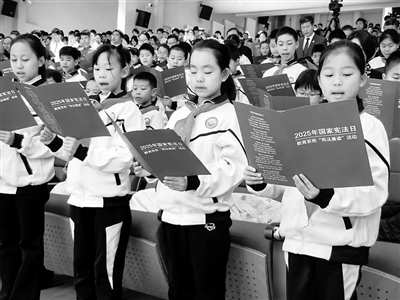 12月4日,2025年國家憲法日教育系統(tǒng)“憲法晨讀”活動主會場,師生在共讀憲法。本報記者 林煥新 攝