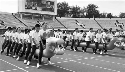 圖① 學(xué)生進(jìn)行趣味集體比賽——龍行萬(wàn)里。