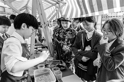 學校定期舉行美食節(jié)活動,圖為學生們在分享自制美食。 學校供圖