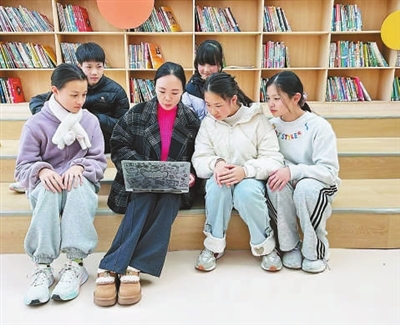 重慶市江北區(qū)濱江小學(xué)校師生在校園數(shù)字化閱覽室開(kāi)展主題共讀活動(dòng)。學(xué)校供圖