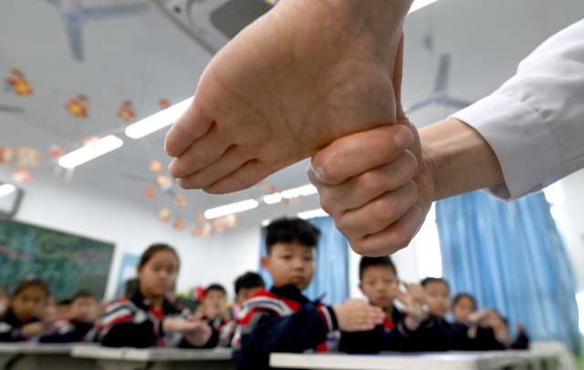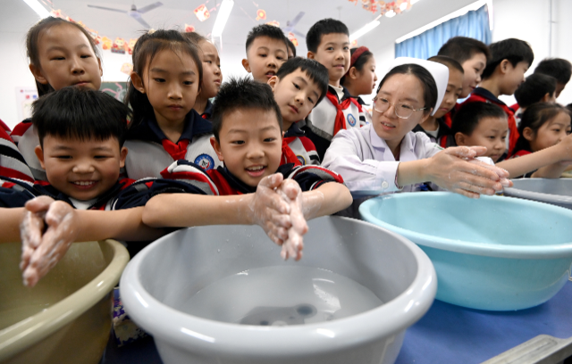 4月7日是世界衛(wèi)生日,河北省邯鄲市人民醫(yī)院聯(lián)合邯山區(qū)實(shí)驗(yàn)中學(xué)小學(xué)部開(kāi)展“講究衛(wèi)生、從小做起”主題活動(dòng),醫(yī)護(hù)人員為學(xué)生們講解正確的洗手方法,讓學(xué)生們認(rèn)識(shí)到講衛(wèi)生的重要性,養(yǎng)成良好的衛(wèi)生習(xí)慣。中國(guó)教育報(bào)-中國(guó)教育新聞網(wǎng)通訊員 郝群英 攝