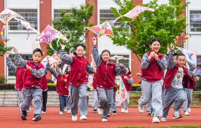 近年來,湖南省永州市道縣道州玉潭(東陽)學校根據(jù)本校實際和學生興趣,積極開展豐富多彩的陽光體育大課間活動,將放風箏、兔子舞、跳繩、趣味游戲等融入體育運動中,提高學生身體素質(zhì),讓孩子們盡情享受課間活動帶來的快樂。(中國教育報-中國教育新聞網(wǎng)通訊員 蔣克青 蔣憑姣 攝)