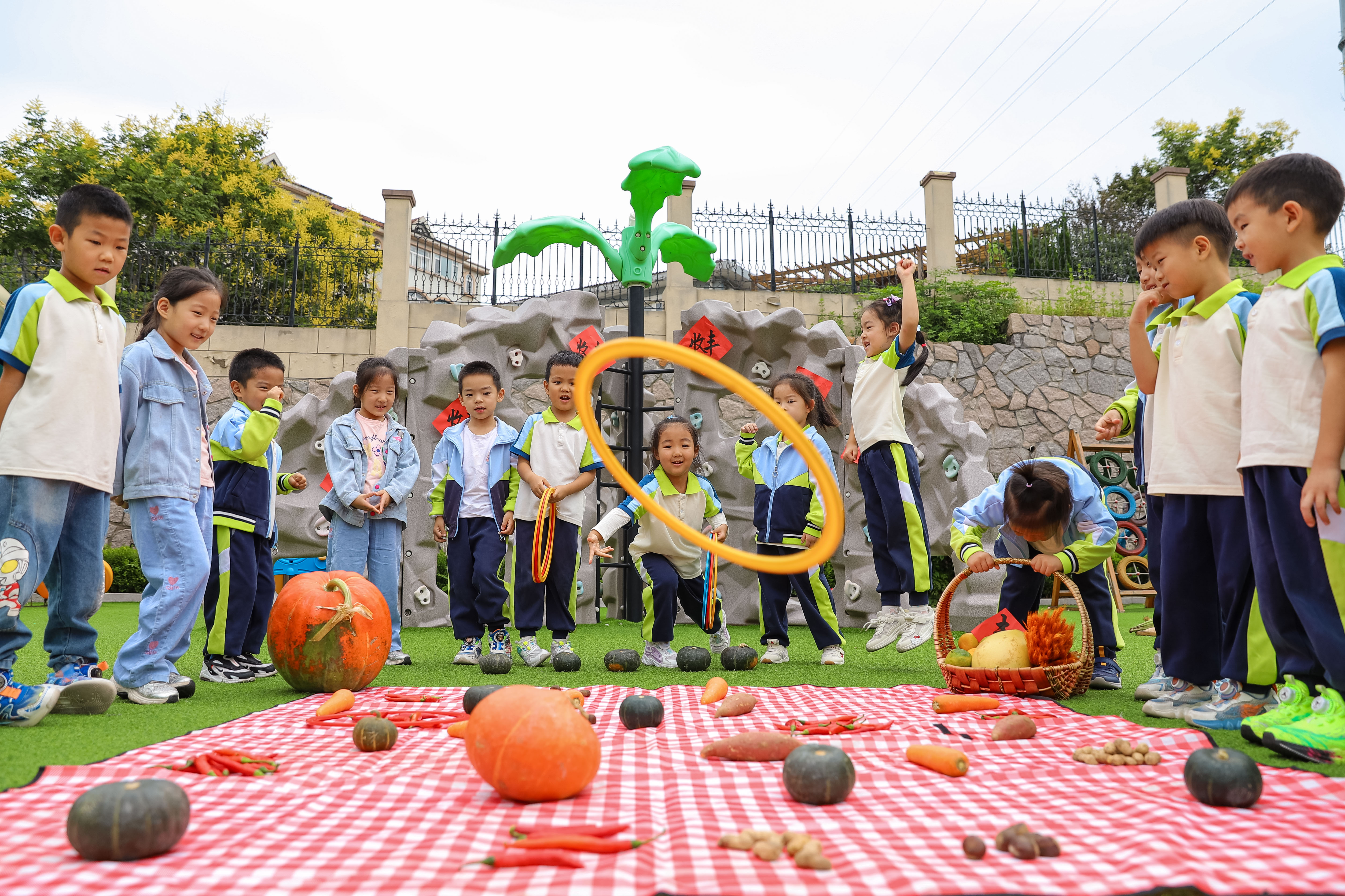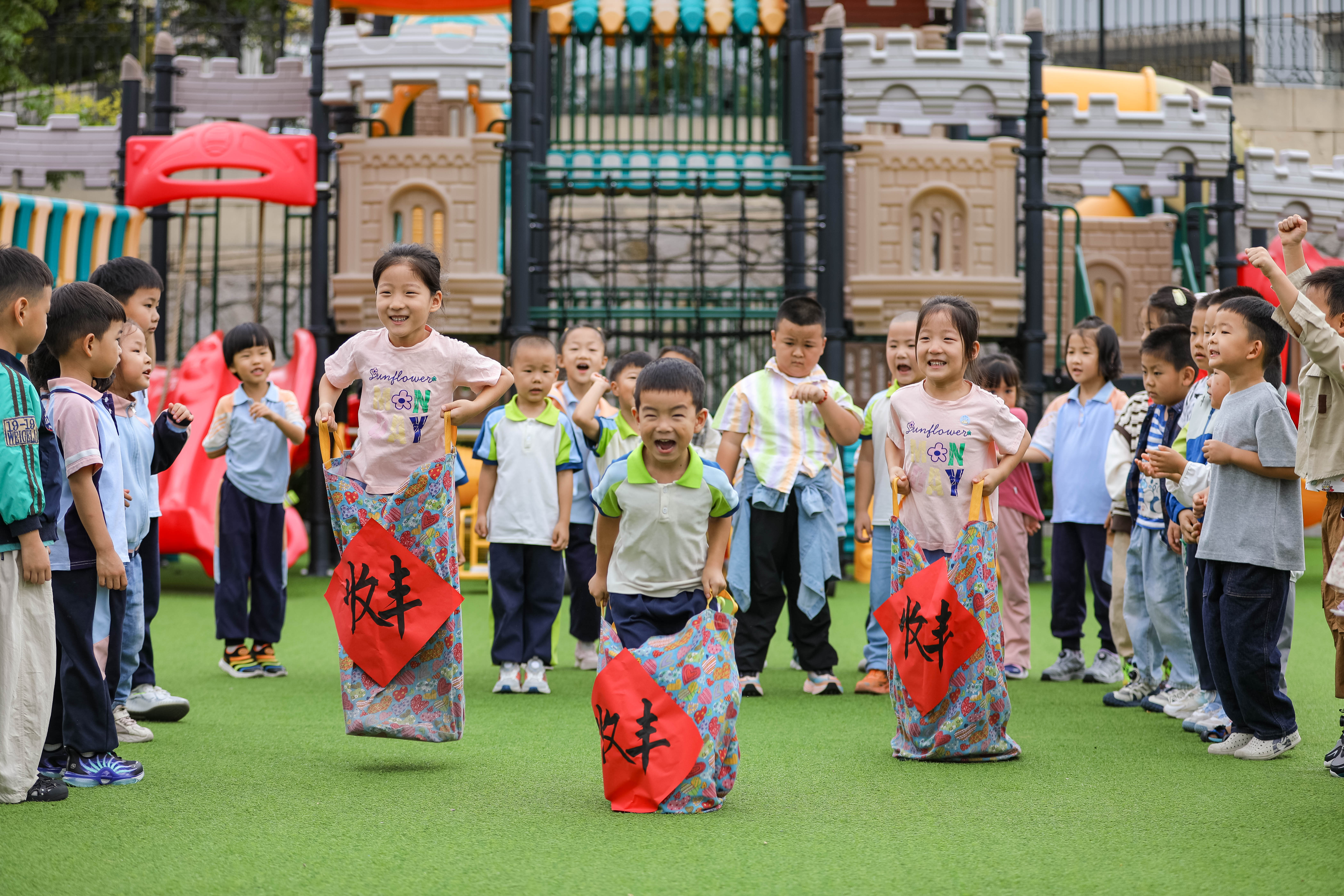 9月22日,山東省青島市李滄區(qū)青峰路幼兒園開(kāi)展“悅運(yùn)動(dòng) 享豐收”主題活動(dòng),小朋友們通過(guò)參與“推車運(yùn)糧食”、搓玉米、瓜果套圈等趣味運(yùn)動(dòng),在快樂(lè)的運(yùn)動(dòng)中感受豐收的喜悅。中國(guó)教育報(bào)-中國(guó)教育新聞網(wǎng)通訊員 張鷹 攝